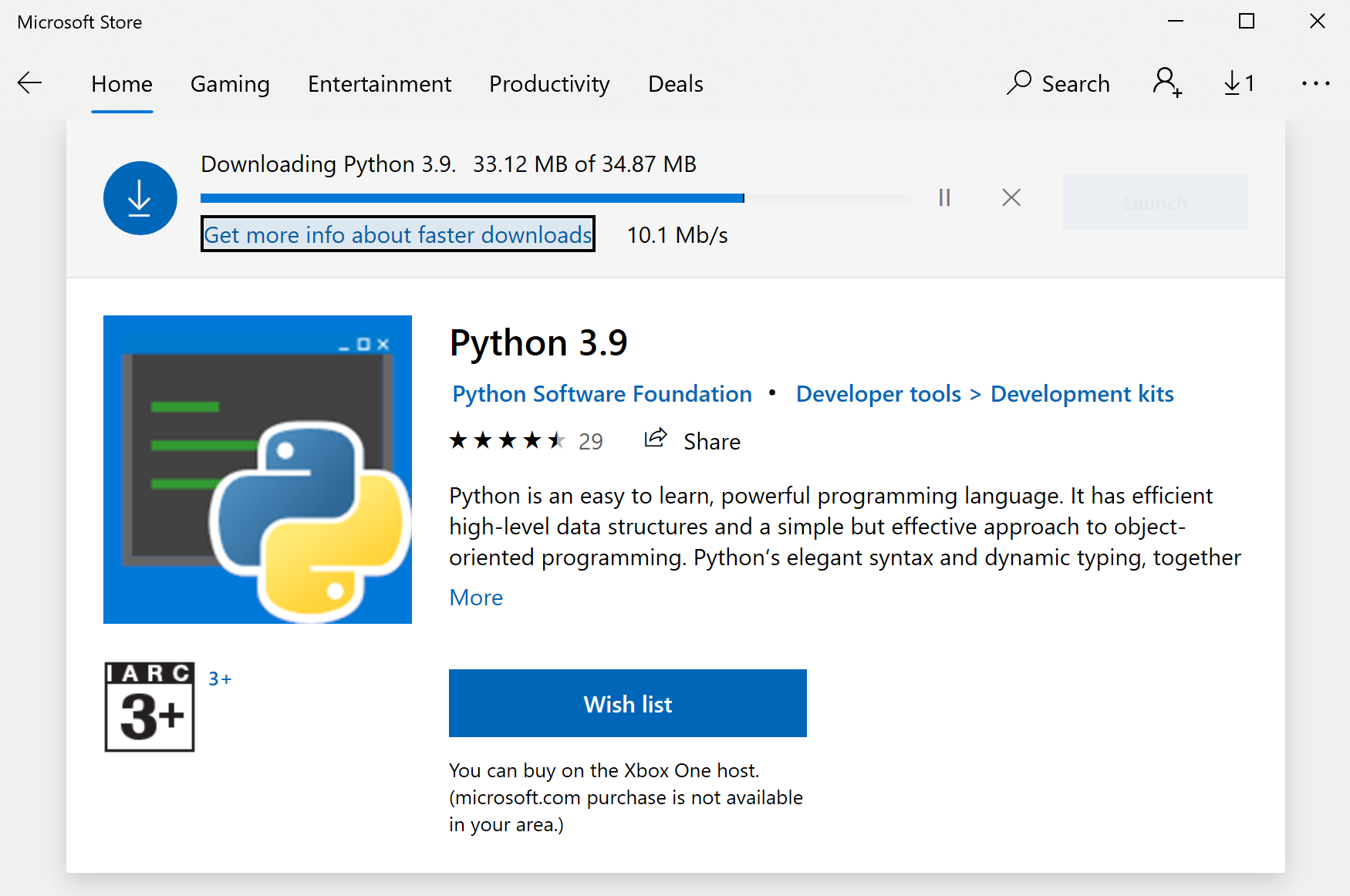 在微软的 Store 里安装 Python3,为下一步创建 HTTP 服务器做准备: