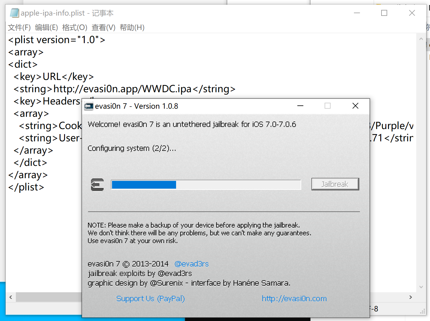 evasi0n7-win-1.0.8.zip sha256 a4d899003d04257372073703a84db0f00c0e4218975052837f140365252dcee1